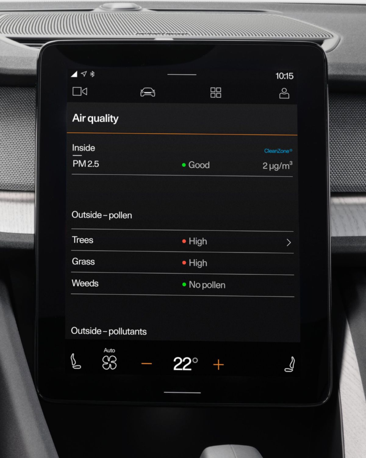 Time for a breath of fresh air. Literally. The advanced air quality system detects pollutants and pollen and immediately adjusts the passenger compartment filter to help keep them out.